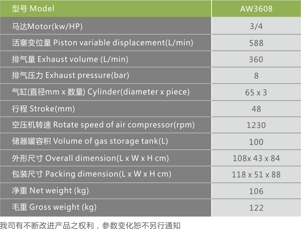 New energy saving and environmental protection AW3608 piston air compressor
